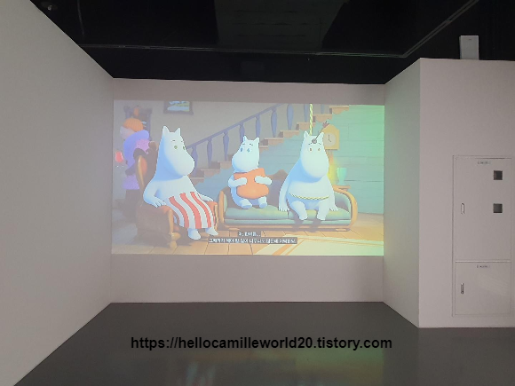 30년 만에 제작된 무민의 3D 애니메이션 <무민밸리>의 일부를 엿볼 수 있는 공간.